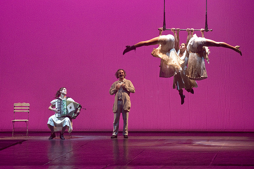 Daniele Finzi Pasca, dedica este espectáculo como homenaje tooltip 4a Chejov, hablando de cosas personales del escritor, nos regalan números de circo como quien sopla burbujas de jabón, cantan, interpretan, se contorsionan… un mundo de sueño.