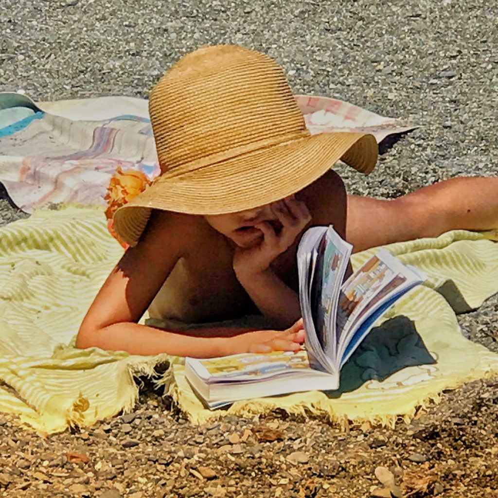 Els pares són a l’aigua, es banyen amb la seva germana i riuen, juguen, gaudeixen del mar i del sol de setembre que generós acomiada les vacances amb la seva llum meravellosa. Però ella no hi ha volgut anar. La mare l’ha cridat des de l’aigua, Jana vine! Però les seves paraules s’han perdut com les onades quan trenquen a la platja. La Jana no l’ha sentit, de fet la Jana no escolta res del que passa fora perquè està tan ficada dins del seu llibre que res pot fer que ella es distregui.